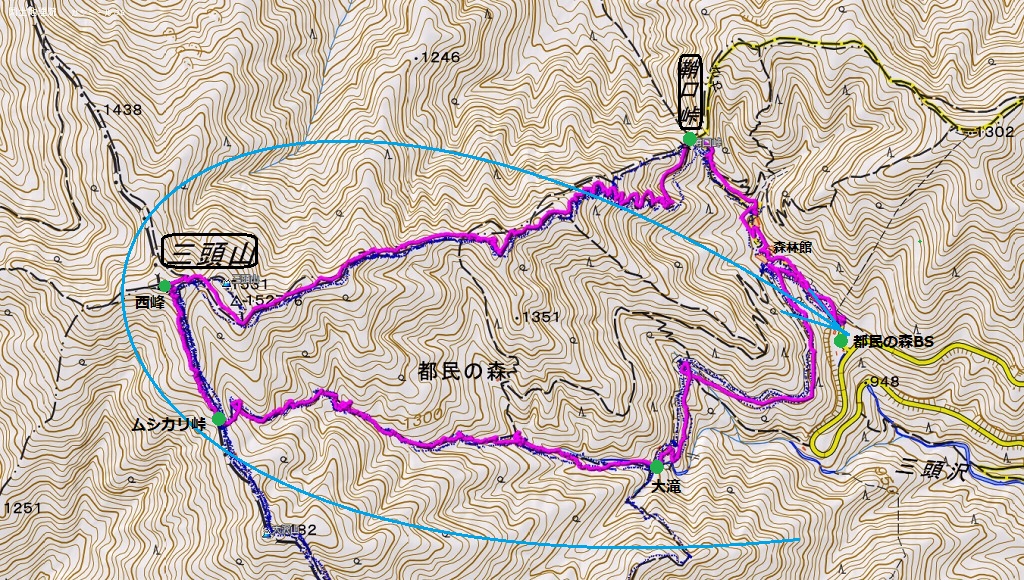 (都民の森BS~大滝~ムシカリ峠~三頭山西峰~鞘口峠~都民の森BS)