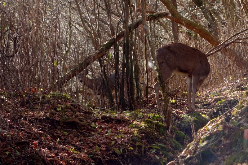 子連れのシカと遭遇 全く逃げることなく草を食んでいた |