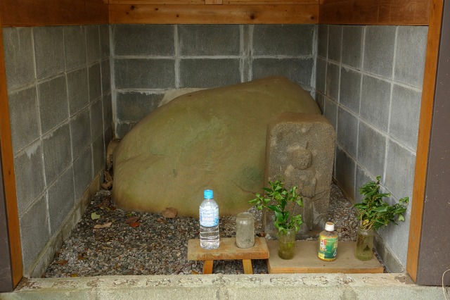 車道歩きの後、 この庚申塚から 細い舗装農道を 登っていく。 |