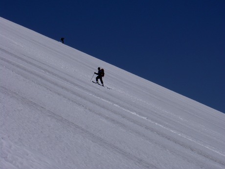 | 2008/3/16 | 北信 | 浅間山スキー | 3 | 前夜発で峰ノ茶屋の登山口駐車場仮泊。16日晴れ、6:55シールで出発。夏道どおしで肩へのトラバースに入ってからは担ぎ、アイゼン。ピーク11:20〜30は空身で往復。2300までアイゼンで往路を下りようやく板をつける。最初はガリガリバーンで斜滑降、中間からはザラメ大斜面を楽しむ。最下部は沢状の雪を拾って1395の建物の駐車場前に出る。星野温泉トンボの湯1200円高いが掛け流し。GPSログ |