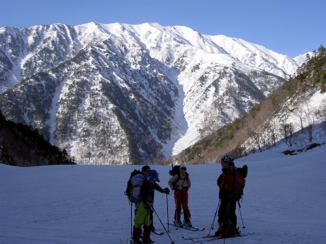 | 2001/4/7 | 谷川 | 芝倉沢スキー | 3 | ロープウェイとリフトを使って少し滑り降りたコル10:00出発。熊穴避難小屋10:30、山頂12:50〜50、一の倉岳14:50〜15:05、ロープウェイ駐車場17:30。快晴無風でトレースばっちりで芝倉沢下降点まで全て板は担ぐ。芝倉は上半部は快適も下半部はデブリで縁を滑ったりして疲れる。湯檜曽川沿いは平坦でスキーを漕ぐ。一箇所だけ水が出ていて外した。橋まで滑って車道を駐車ビルまで戻る。 |